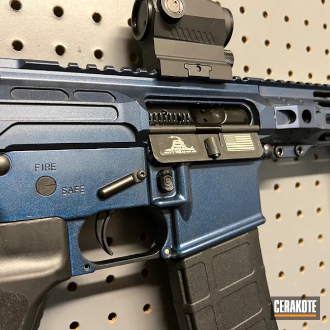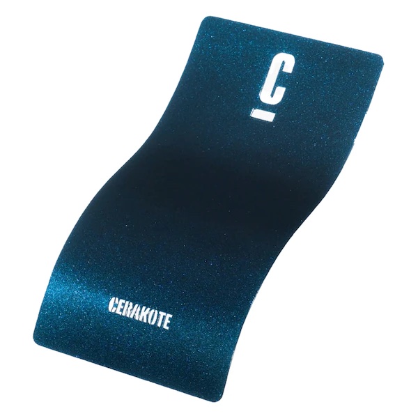 Cerakote FX-104 LIBERTY是一颗闪闪发光的珍珠海蓝色。(色板是喷涂过FX-104 LIBERTY的 H-146石墨黑)